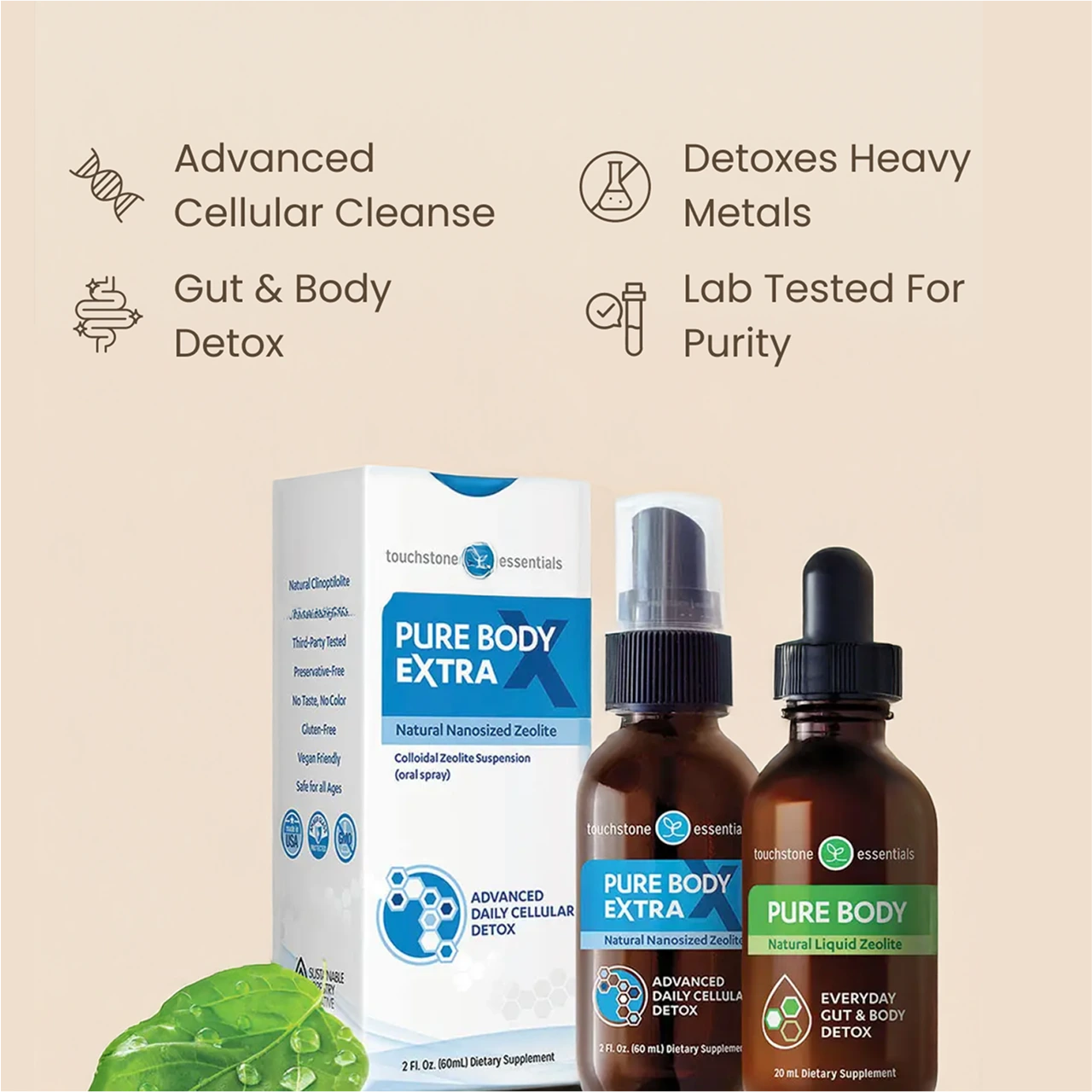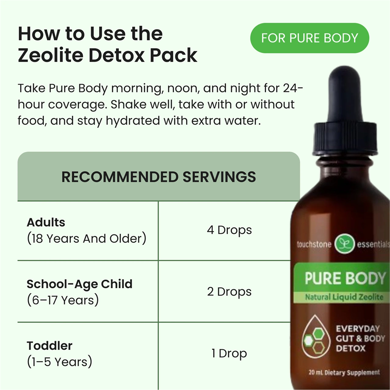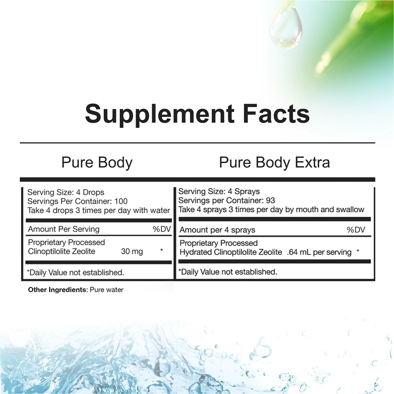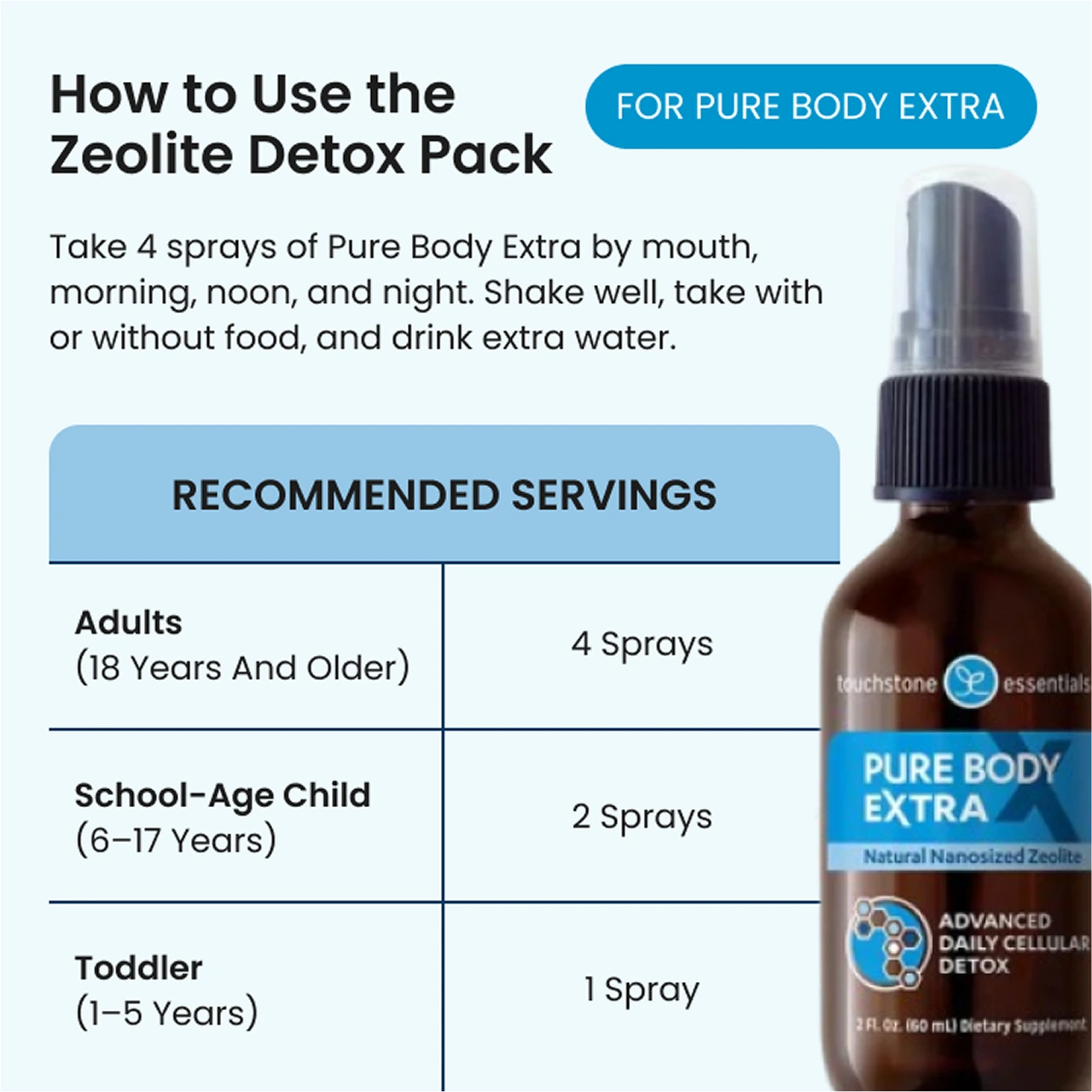 Most zeolites detox only the gut, but the Zeolite Detox Pack targets both body and gut. Pure Body Extra uses nanosized particles for cellular-level detox.