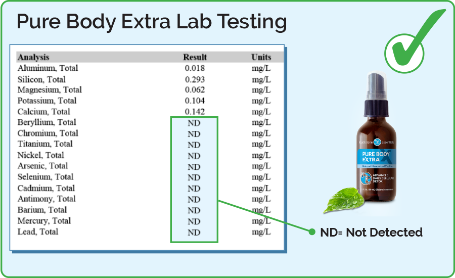 The zeolite in Pure Body Extra undergoes a proprietary milling process that reduces the size of each of the zeolite “cages” to the nanometer range.