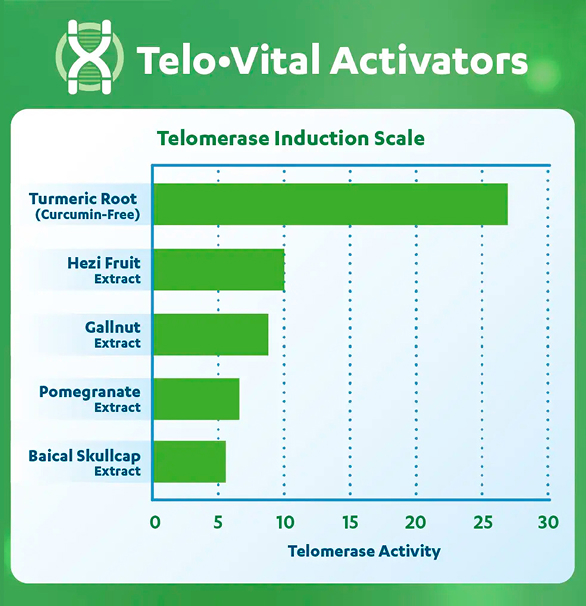 Phytochemicals activate telomerase in your body, signaling cells to support telomere length and longevity.